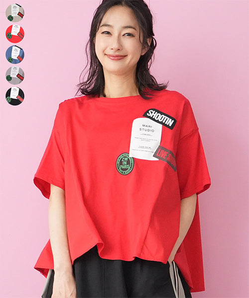 Home 新作アイテム 【接触冷感】綿100%ロゴパッチワーク使い切替Tシャツカットソー 36-1844