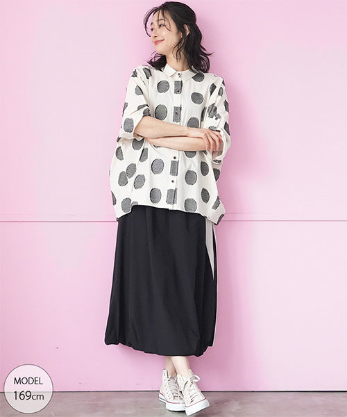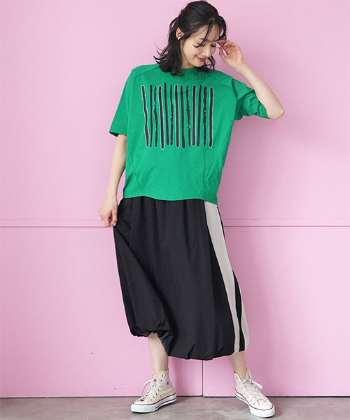 ウエストゴムなので、毎日の動きに楽々フィットします。 脇に施したバイカラーの切り替えで、さり気なくスッキリ見えが叶います。 広がりすぎない控えめバルーンシルエットが、大人可愛さを引き出します。 目立ちすぎない脇ポケットも、嬉しい仕様です。 ※36-1816とセットアップが可能です。