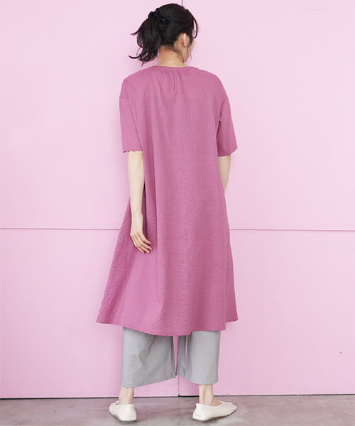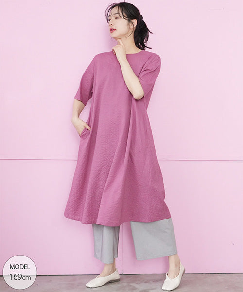 綿100%アシンメトリーピンタック半袖ロングワンピース 33-0528 ¥6,990.00