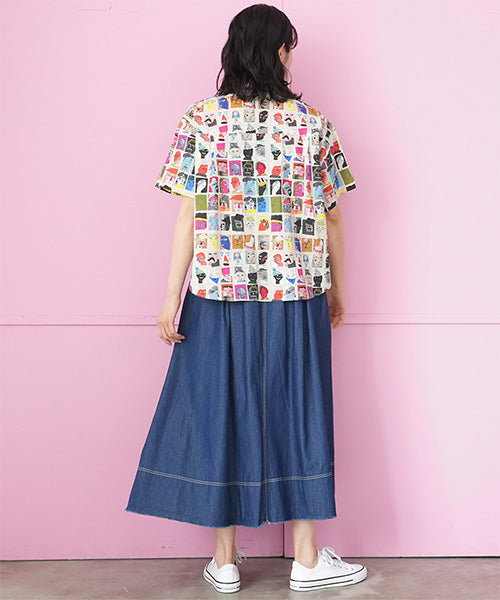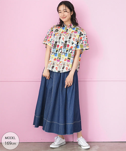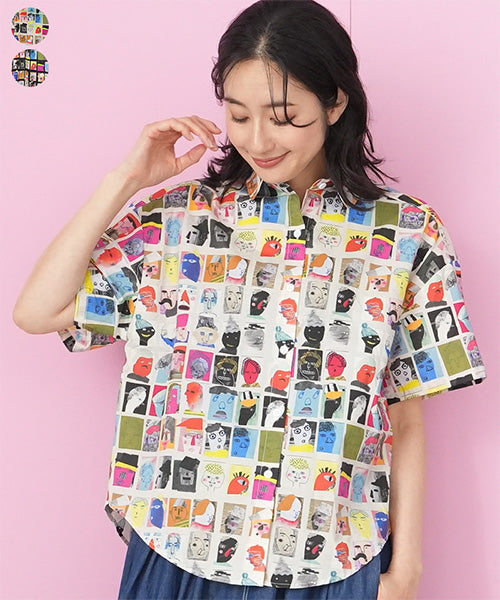 綿100%フェイスイラストプリントシャツブラウス 46-0310